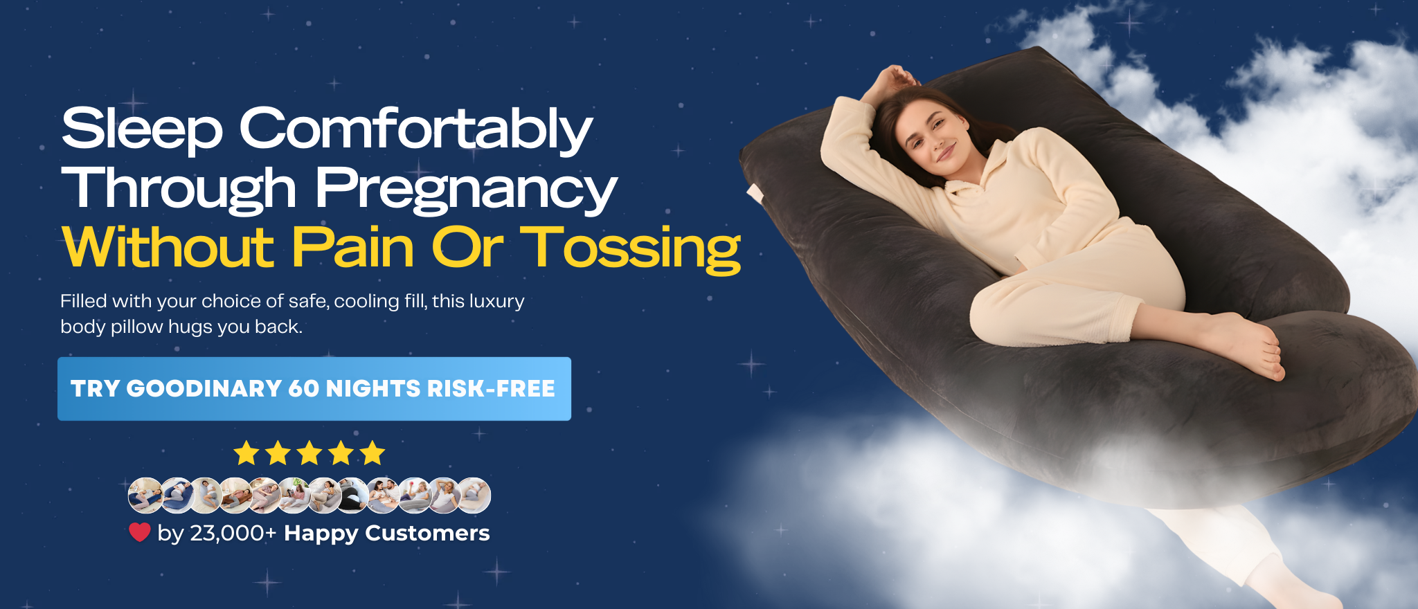 Not at all! While it’s perfect for pregnancy support, Goodinary Pillow is also ideal for side sleepers, people with back or hip pain, recovery after surgery, or anyone wanting better sleep.